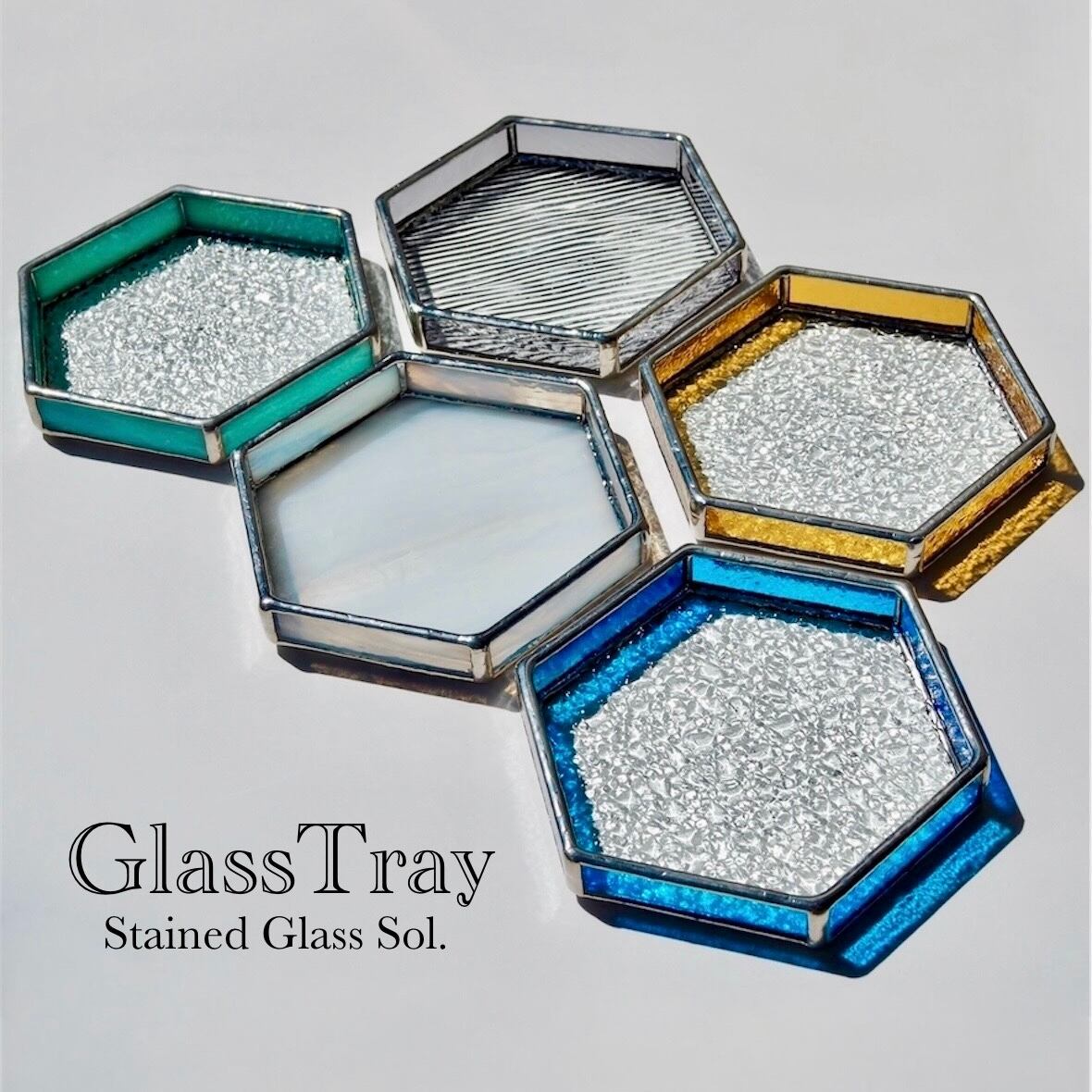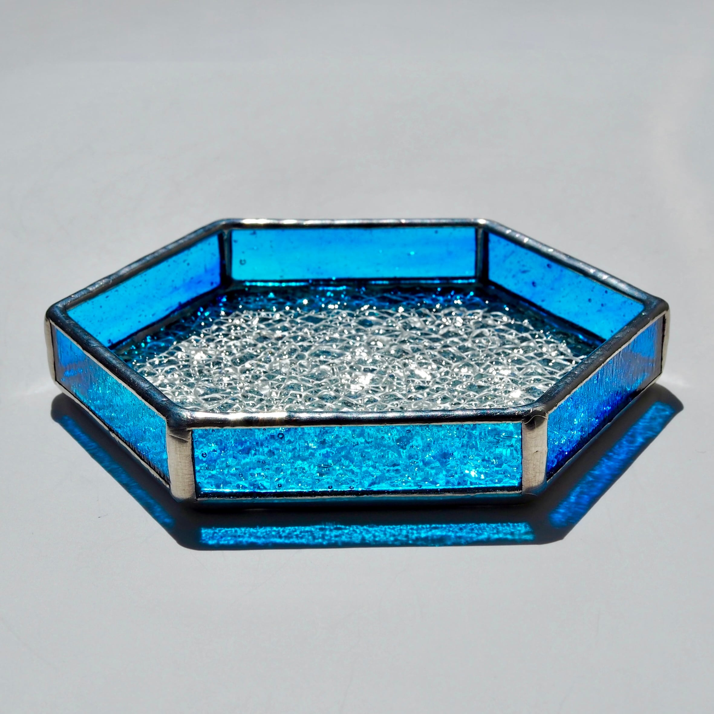 海辺を思わせる、ブルーのステンドグラストレイ。