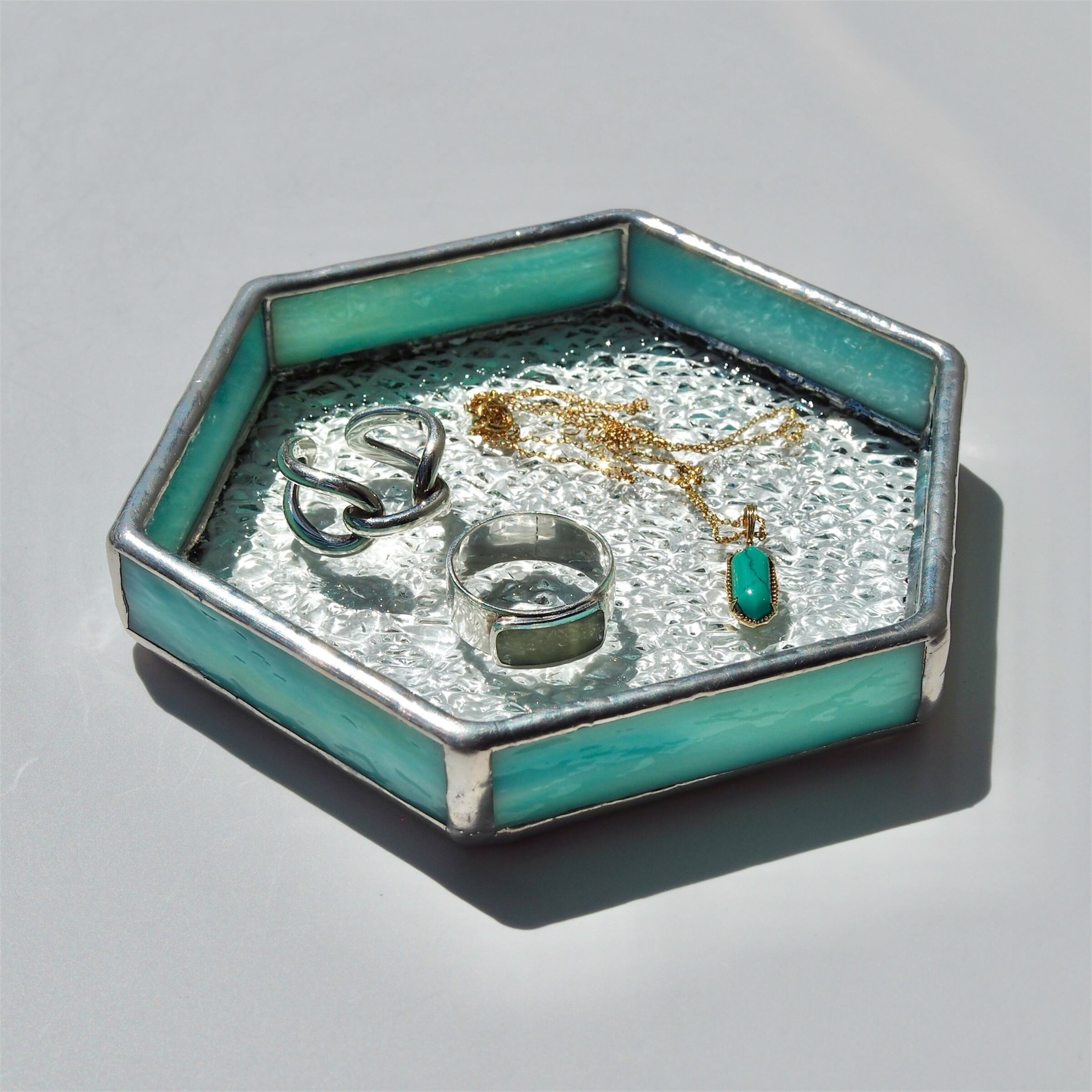 ステンドグラス製トレイ『GlassTray』/アクセサリートレイ/小物置き/キャンドルベース/玄関/ハンドメイド