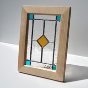 中央にあしらった黄色のダイヤ型ガラスが印象的な、ステンドグラスパネル。