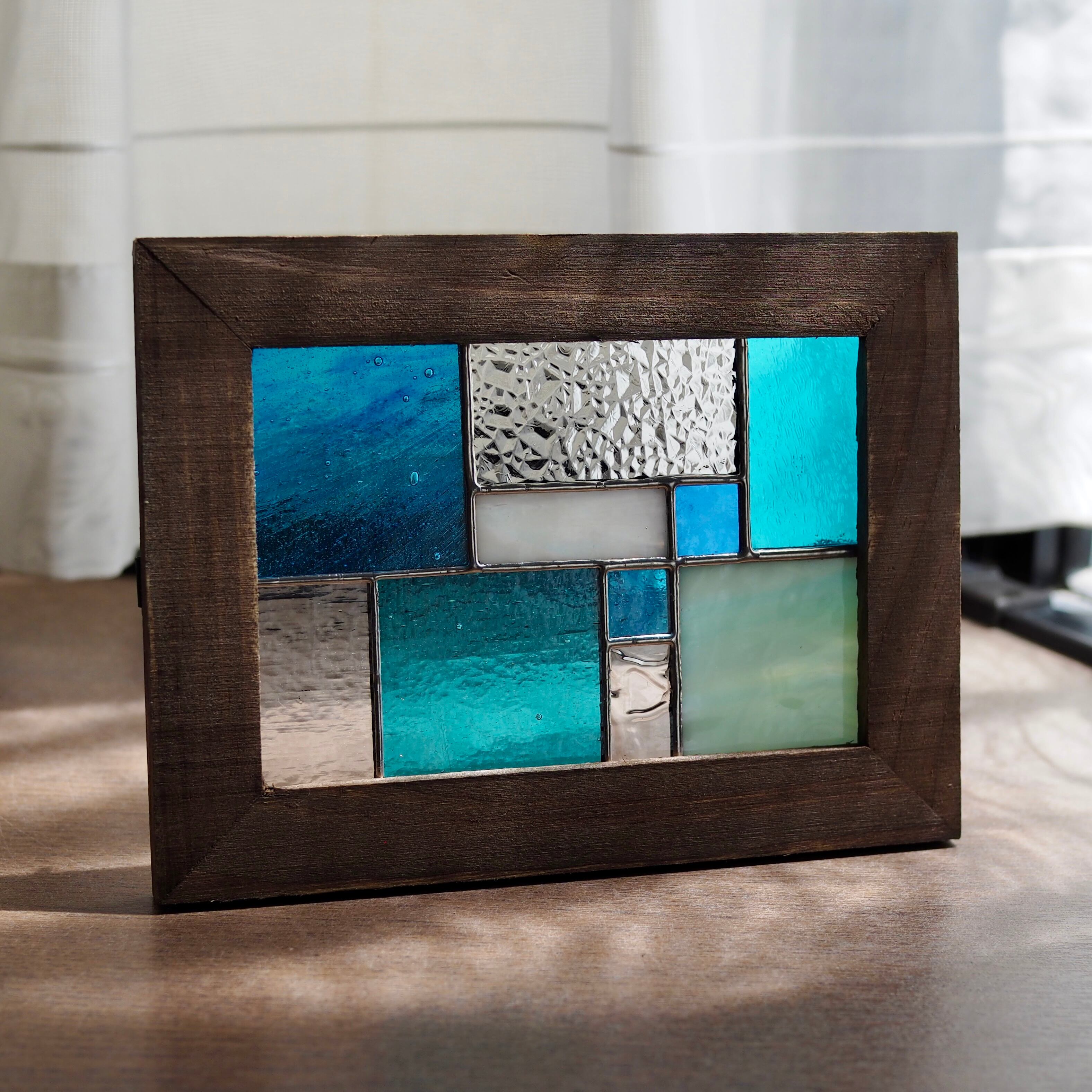ステンドグラスパネル/プレート/木製フレーム/置物/壁掛け/ガラス/ハンドメイド