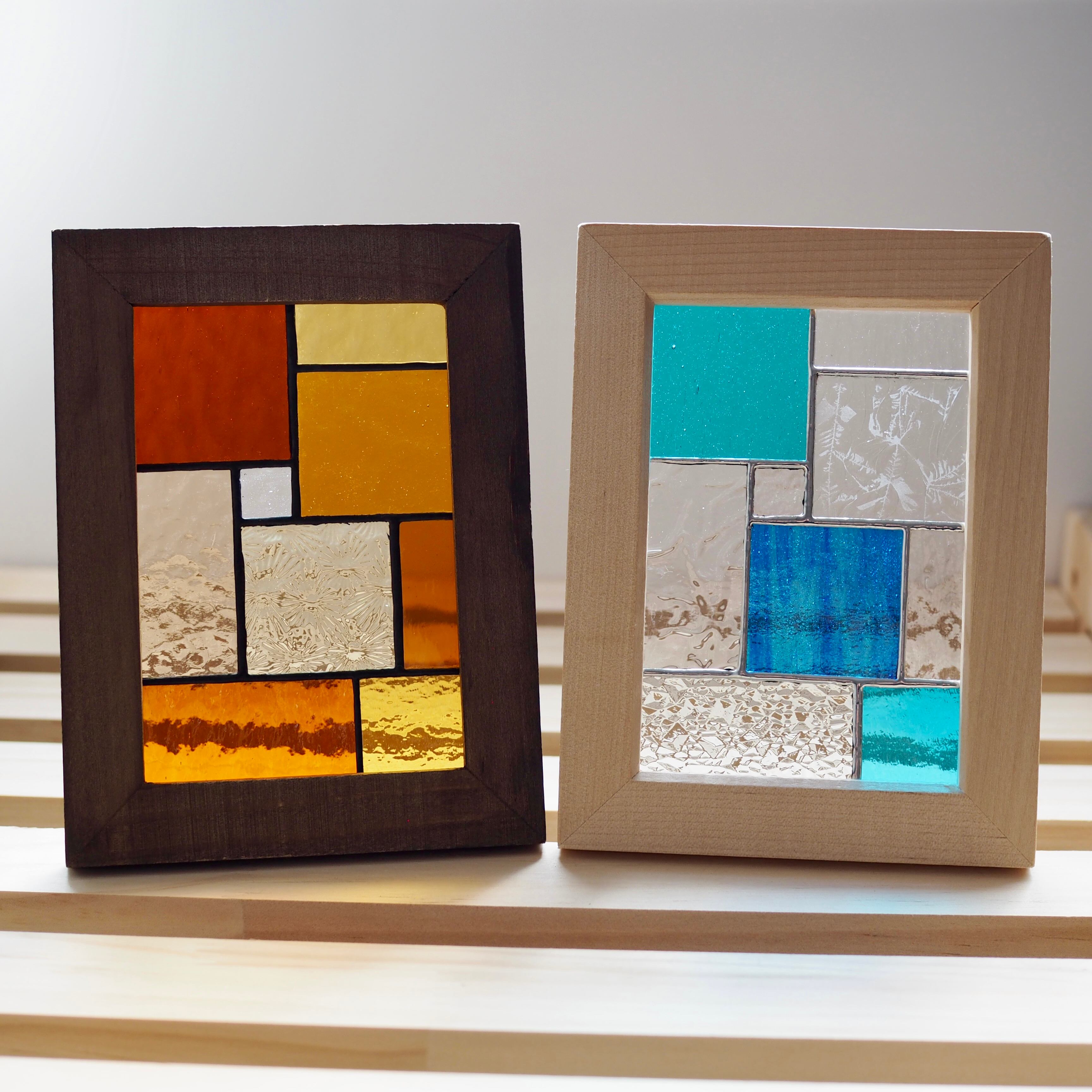 ステンドグラスパネル/プレート/木製フレーム/置物/壁掛け/ガラス/ハンドメイド